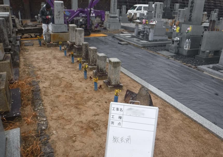 図面作成のち墓石配置を決め防草工事で基礎をつくる